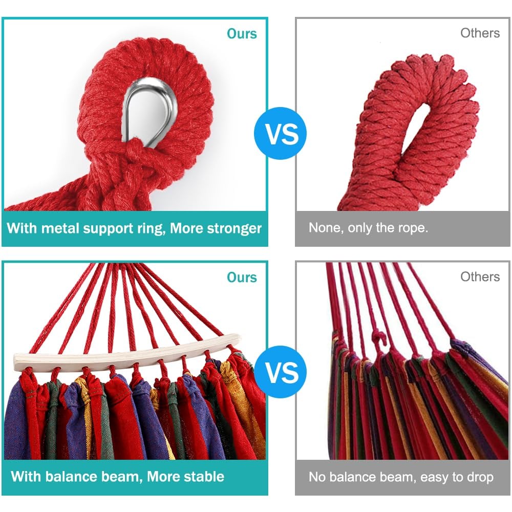 Versatile outdoor hammock:Whether you want to set it up in your backyard, garden, poolside, or take it to the beach, this hammock for outside is perfect for various outdoor relaxation and leisure moments. Please note that the stand is not included.